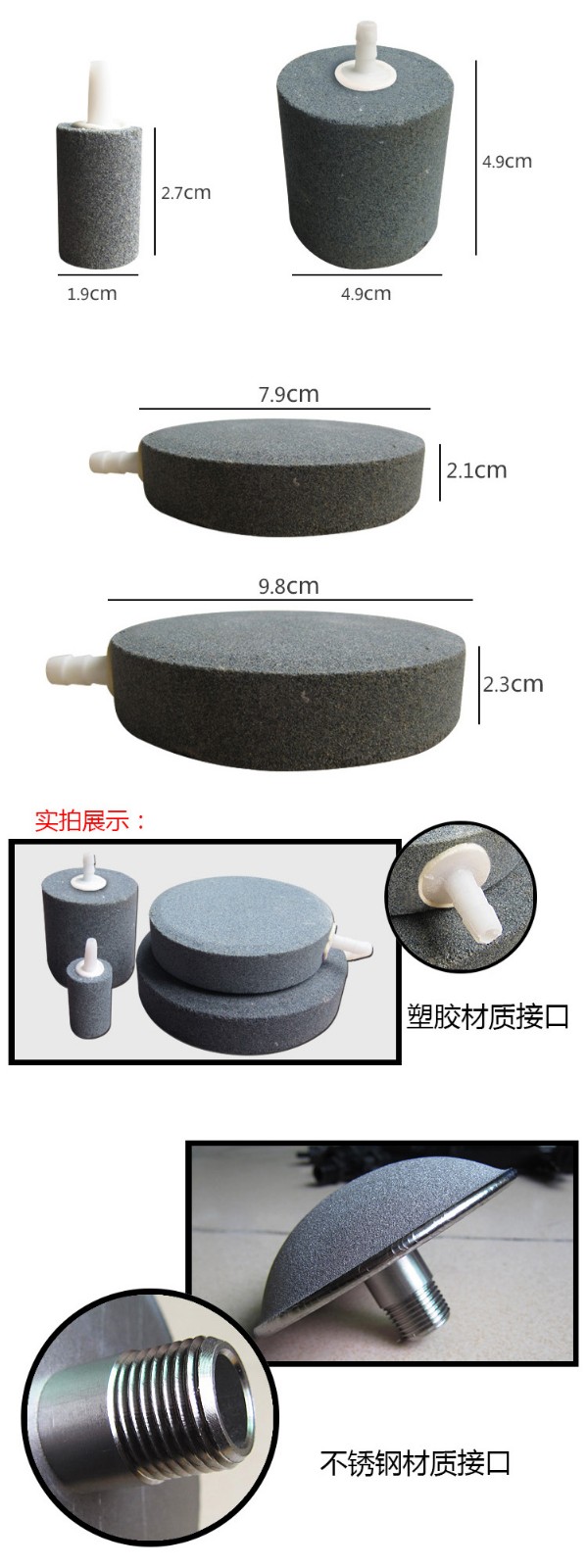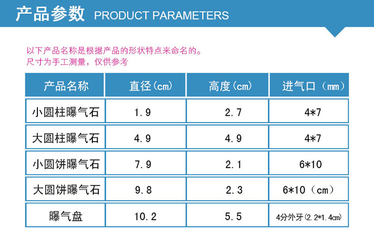 曝氣盤(pán)又稱(chēng)鈦曝氣器或微孔純鈦曝氣器。 球面式規(guī)格如下: 直徑:Φ100mm、Φ150mm、Φ180mm 鈦曝氣器采用國(guó)外先進(jìn)技術(shù)以工業(yè)純鈦粉(純度≥99.6899%)為主要原料,經(jīng)高溫高真空燒結(jié)而成。其結(jié)構(gòu)均勻、微孔孔徑0.22—100μm,孔隙度35%~50%、過(guò)濾阻力 小,分離、凈化效率高,機(jī)械性能好,球面底直徑100mm~180mm,厚度3mm,曝氣氣泡0.1~2mm,且曝氣阻力小、氣液界 面積大、氣泡擴(kuò)散均勻,不會(huì)產(chǎn)生孔眼阻塞,耐腐蝕性強(qiáng),比常規(guī)曝氣氣能耗降低40%,增加污水處理量近一倍。 使用壽命長(zhǎng)達(dá)10年。特別適用于城市污水、大 型用水工廠新建擴(kuò)建和老曝氣池改造。曝氣頭接口方式有4分口,6分口,可內(nèi)或外螺紋。 應(yīng)用范圍:市政、制藥、化工污水處理,生化池曝氣系統(tǒng);水產(chǎn)養(yǎng)殖、水族館水體增氧等。